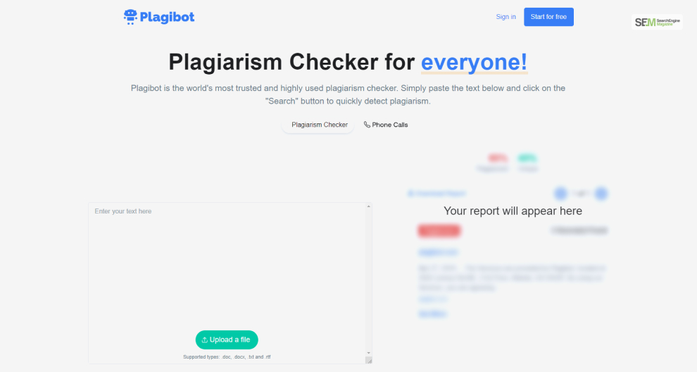 While Plagibot started out as an essay plagiarism detector tool, it got updated recently, incorporating more AI essay detection features.